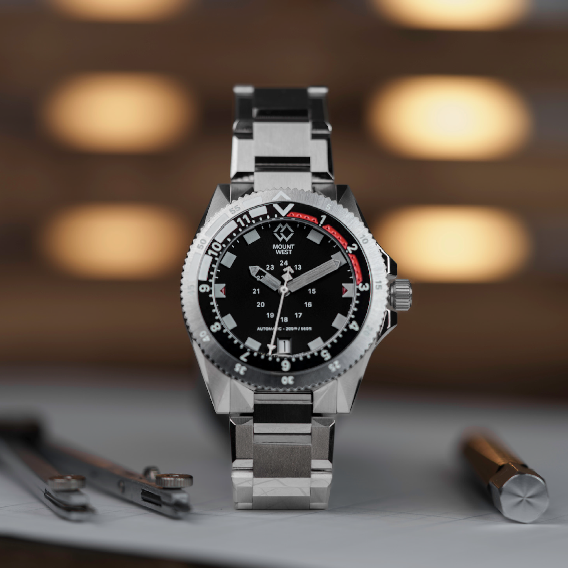 Mount West introduces its debut timepiece, featuring our proprietary "Dual Uni-Directional Bezel" technology-- bringing a new level of utility and engagement to the user. Designed, tested and serialized in the U.S., it houses a Swiss Sellita SW200 automatic movement, blending Swiss precision and American innovation.